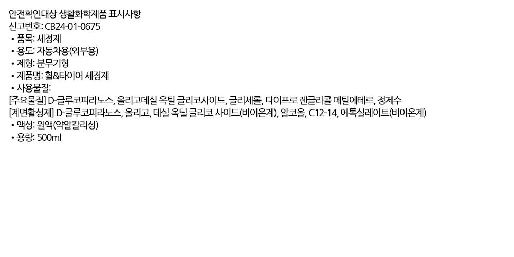 특수 세정 성분 자동차 세차 휠 타이어 세정제 500ml