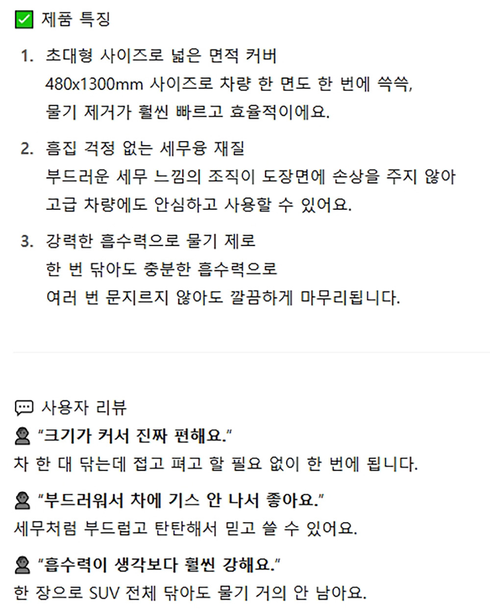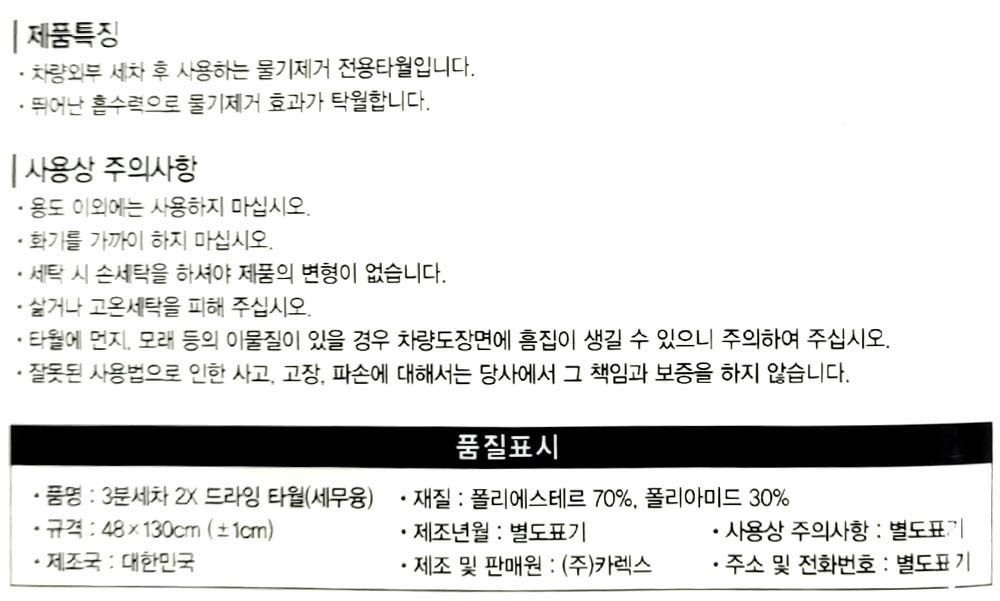 차량외부 세차 후 사용하는 물기제거 전용 드라잉타월