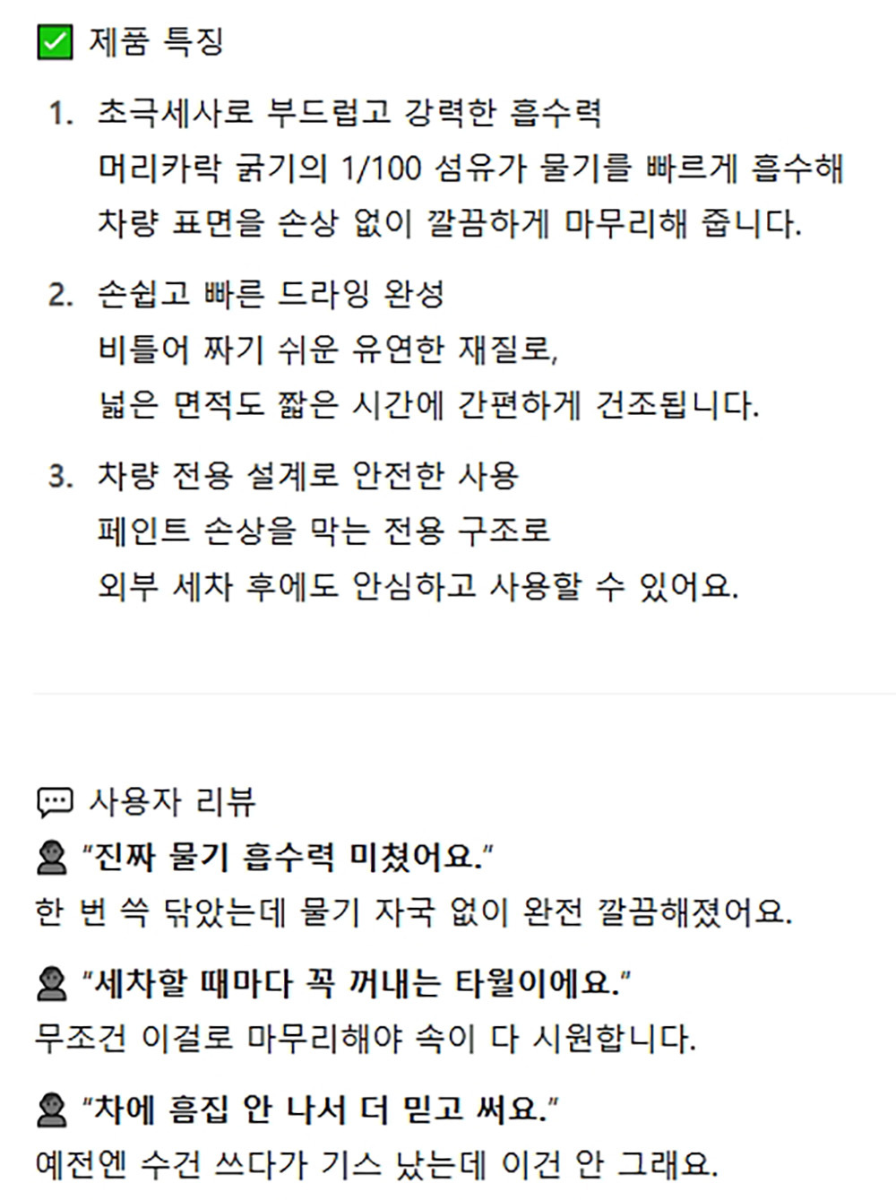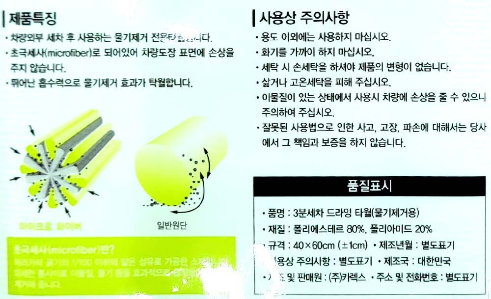 물기제거 능력이 탁월한 초극세사 자동차 드라잉타월