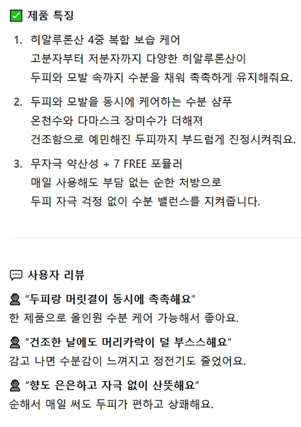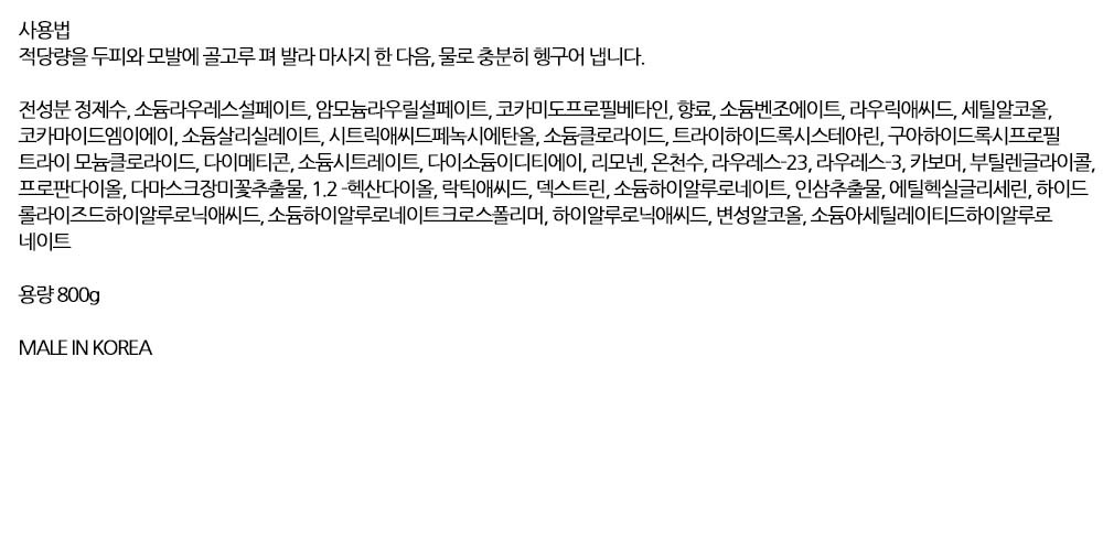 건조한 두피 수분을 충전하는 수분케어 헤어샴푸 800g