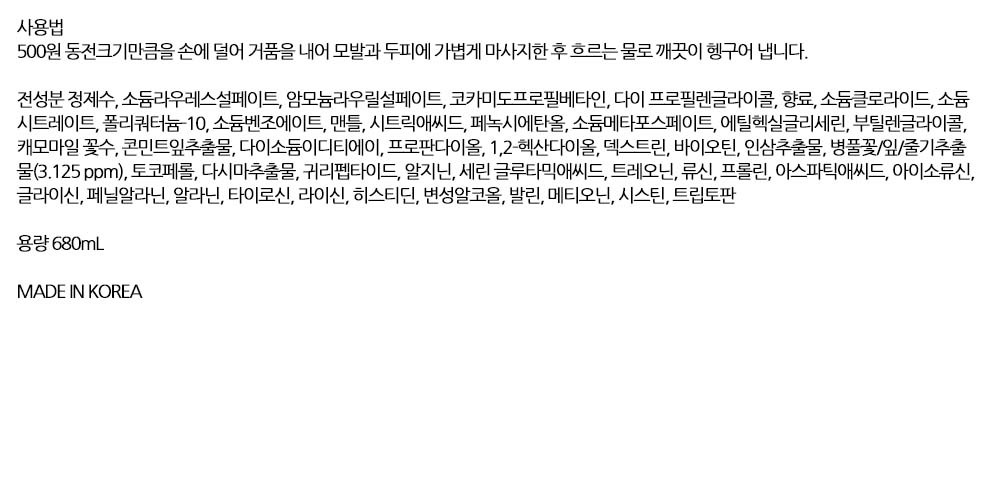 떡지고 기름진 두피를 상쾌하게 시카 헤어 샴푸 680ml