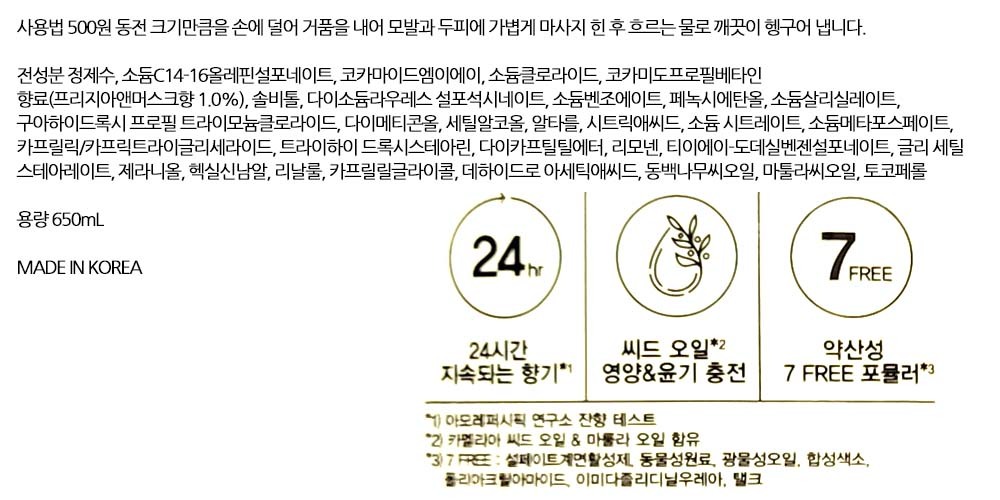 순수하고 사랑스러운 분위기를 선사 헤어 샴푸 650ml