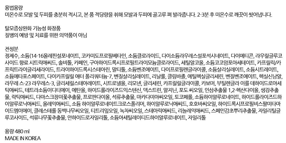푸석하고 뻣뻣한 모발 동백오일 함유 헤어 샴푸 480ml