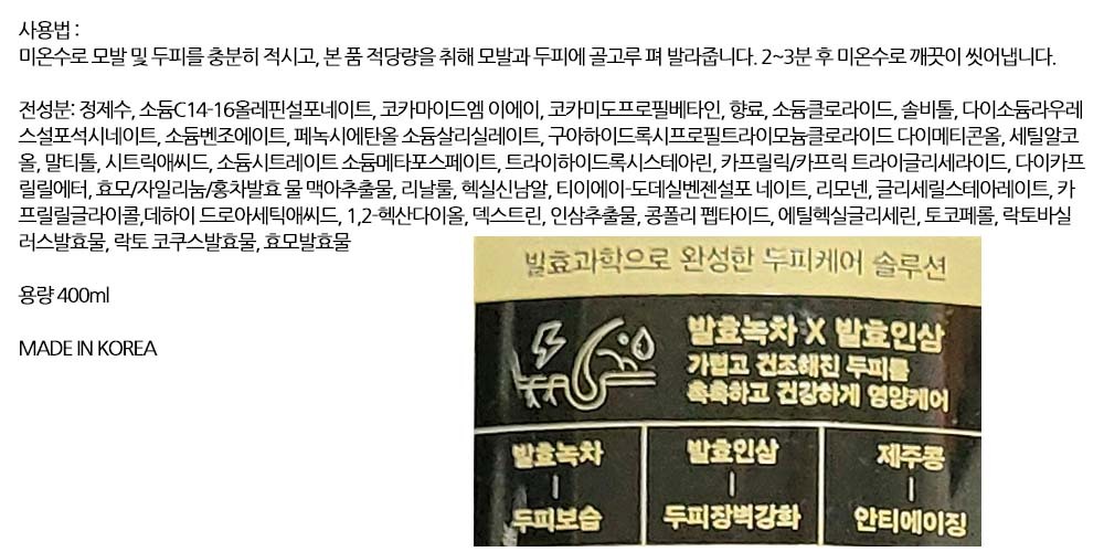가볍고 건조해진 두피 발효녹차 인삼 헤어 샴푸 400ml