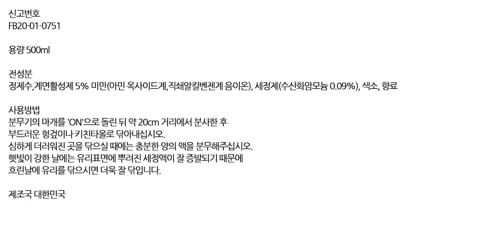 얼룩없이 깨끗하게 빛나요 창문거울 유리세정제 500ml