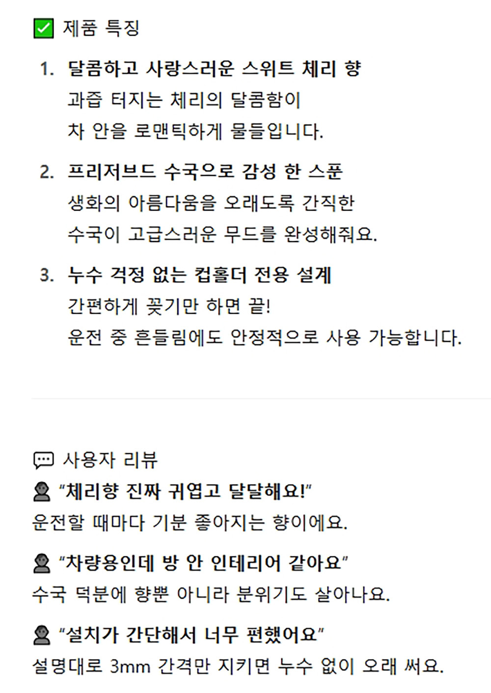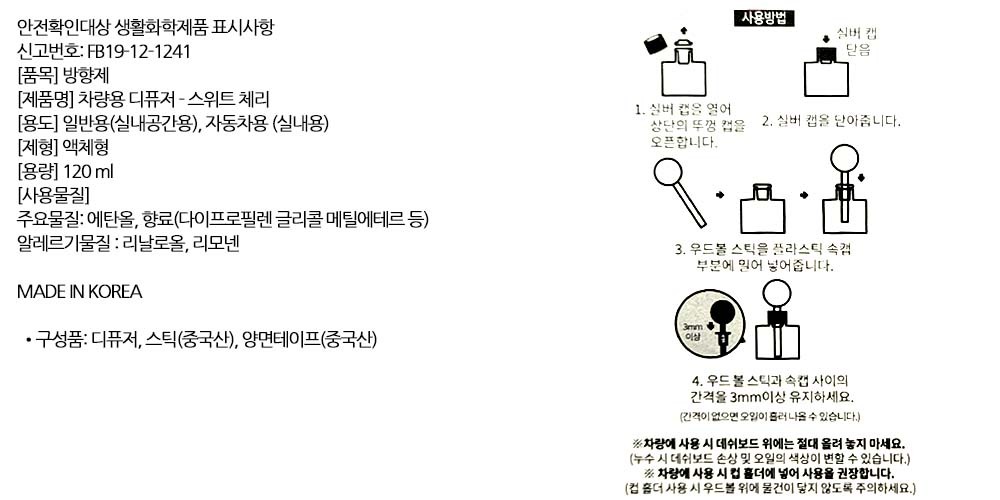 달콤 사랑스러운 스위트 체리향 차량용 디퓨저 120ml