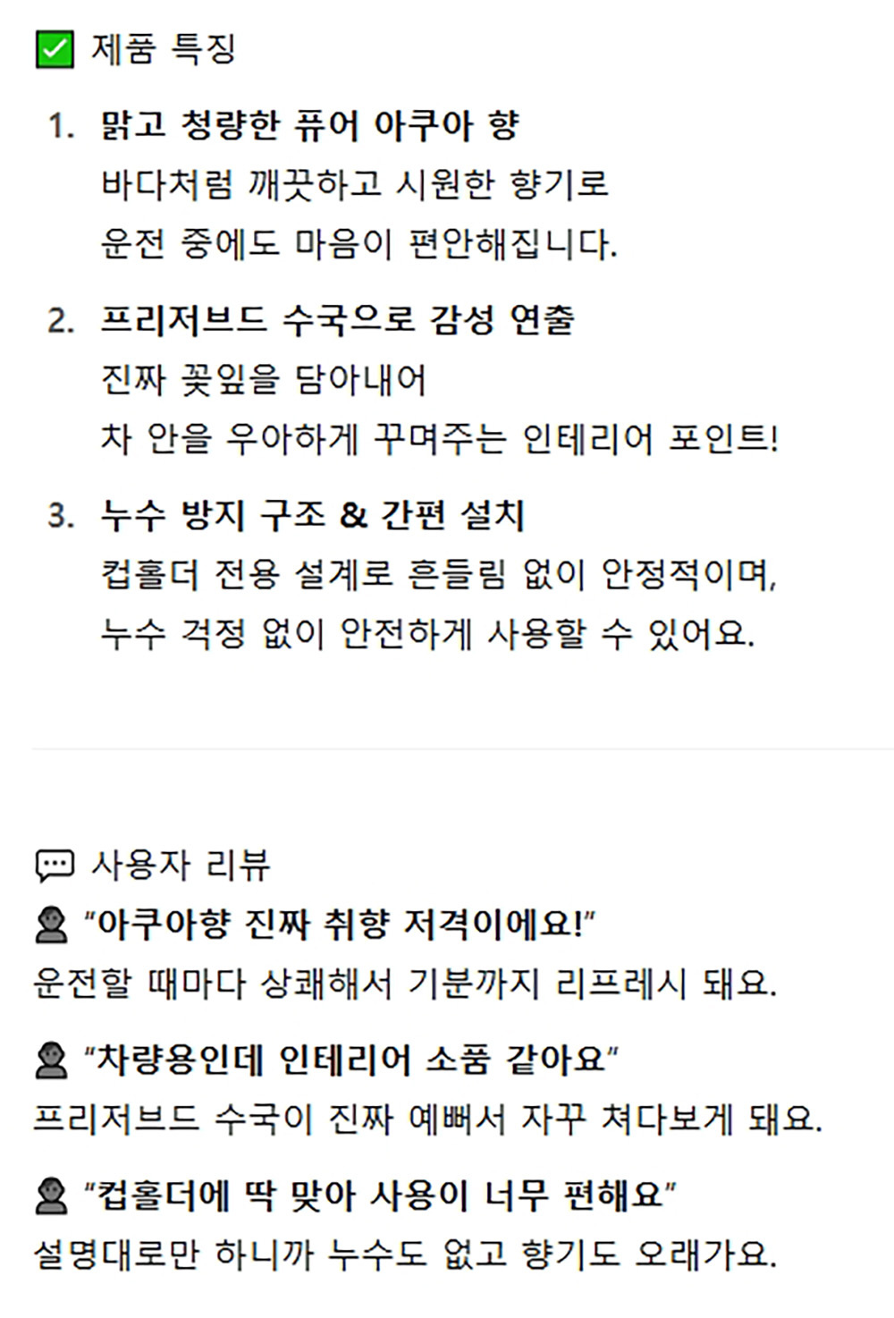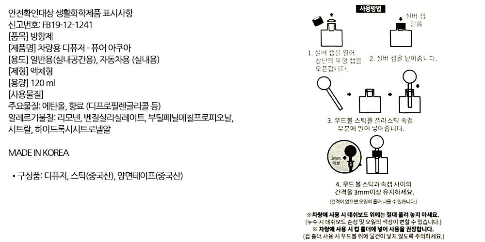 바다처럼 맑고 청량한 아쿠아향 차량용 디퓨저 120ml