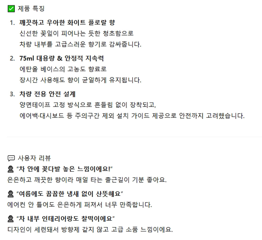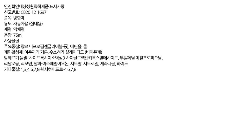 깨끗하고 우아한 화이트 플로랄향 자동차 방향제 75ml