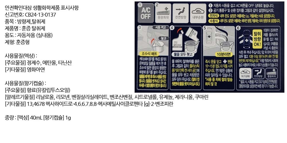 불쾌한 체취 강력제거 센탈우드향 자동차 훈증캔 40ml
