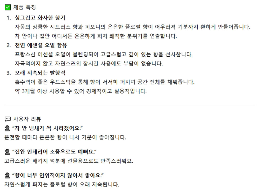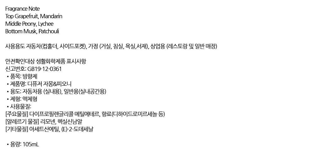 자몽의 상큼함 피오니 플라워향 자동차 디퓨저 105ml