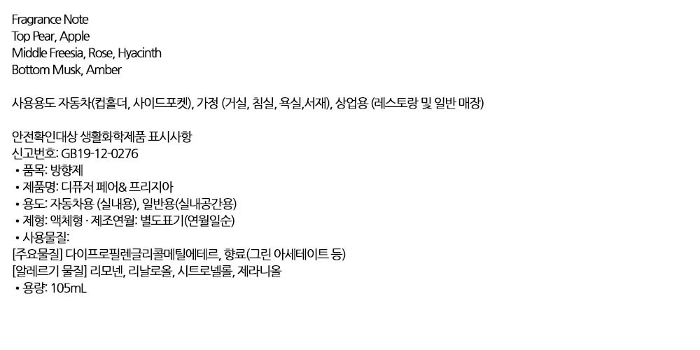 잉글리쉬페어 달콤함 프리지아향 자동차 디퓨저 105ml