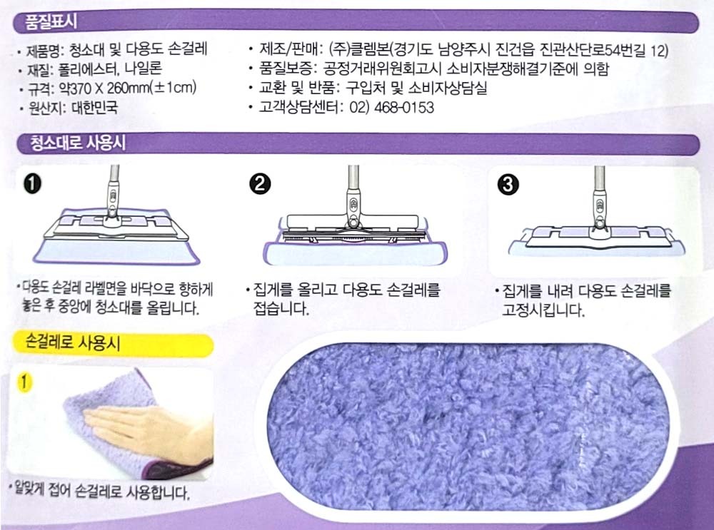손 걸레질 찌든때 뛰어난 먼지포집 다용도 손걸레 1입