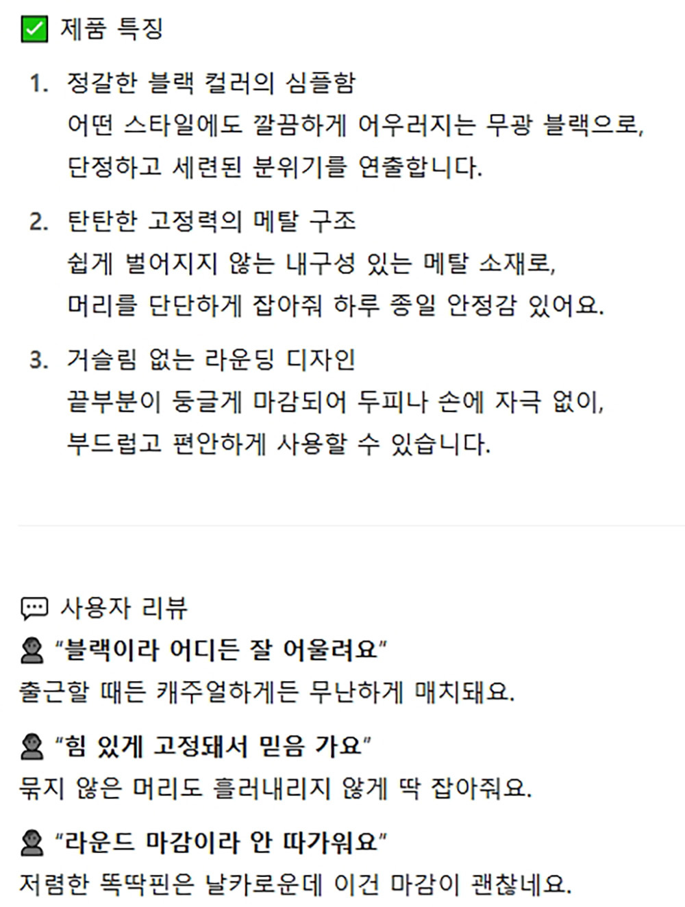 정갈한 블랙컬러 심플한 에폭 헤어똑딱핀 블랙 3P 5봉