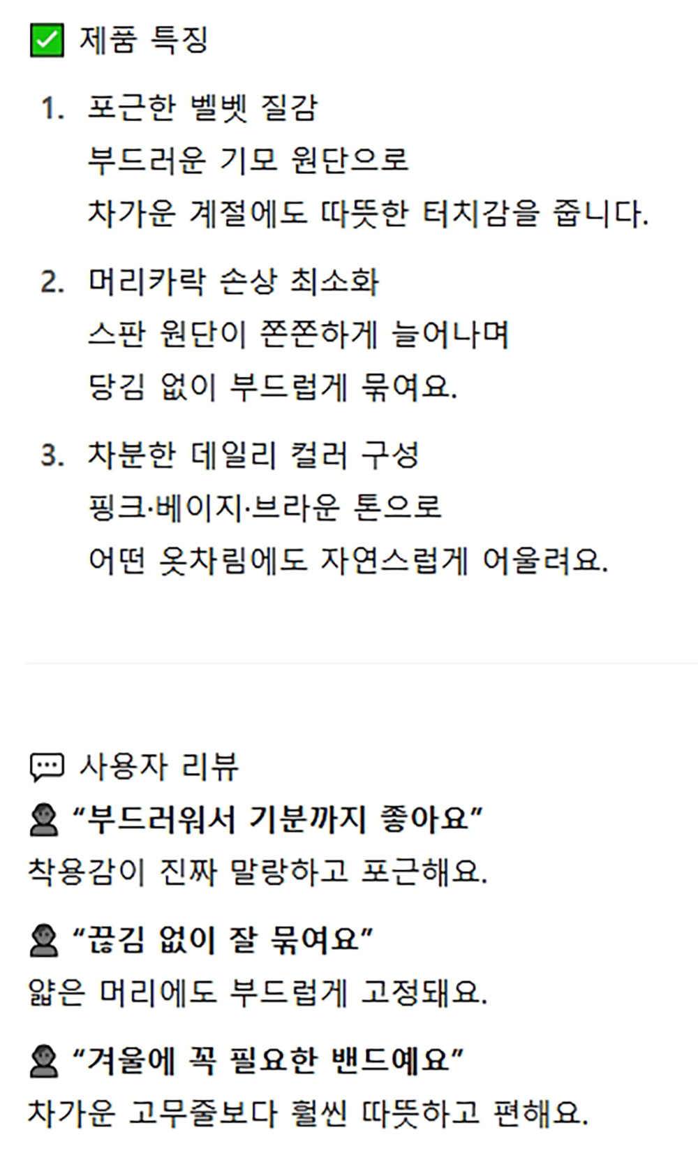 고급스러운 기모 스판소재 헤어밴드 컬러 3P 5봉