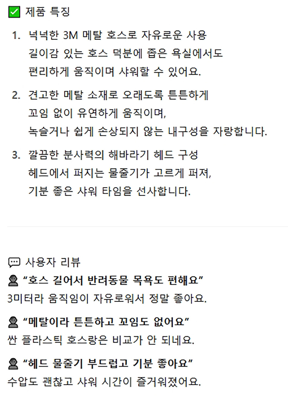 물줄기 고르게 퍼지는 해바라기 샤워헤드 호스세트 3m