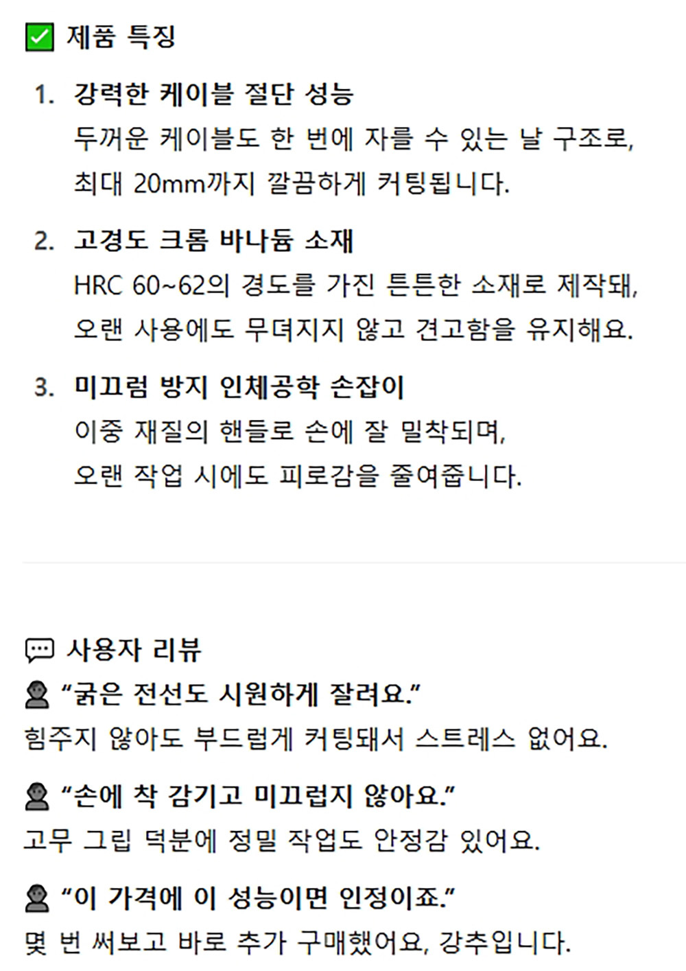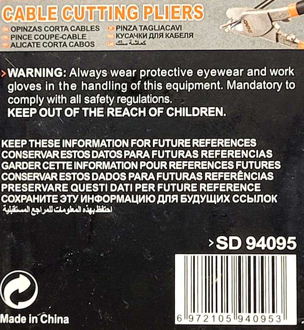 강력한 케이블 절단 성능 수공구 커팅 플라이어 250mm