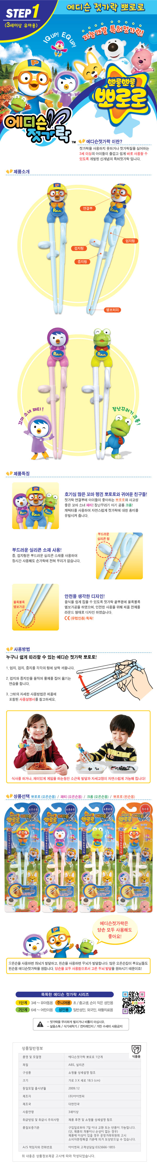 뽀로로 캐릭터 유아젓가락 3세이상 연습용