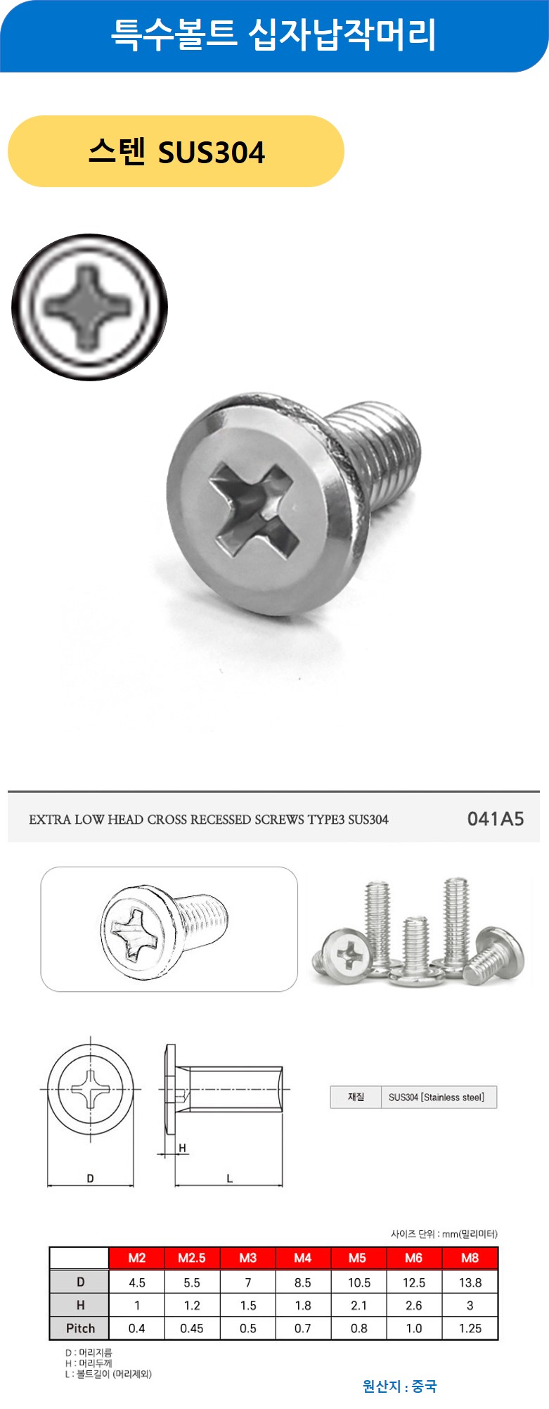 특수볼트 십자납작머리 스텐 M8x25mm 50개