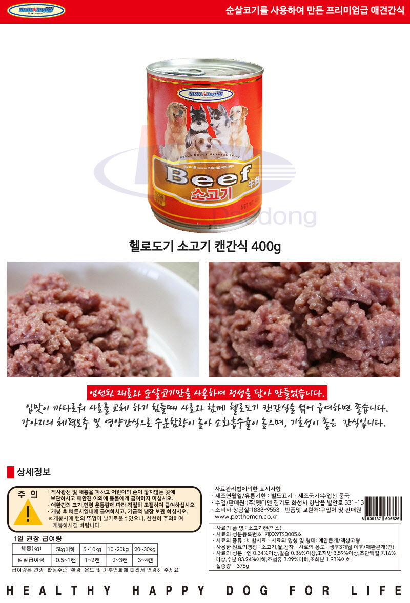 헬로도기 캔 400g(전견용)