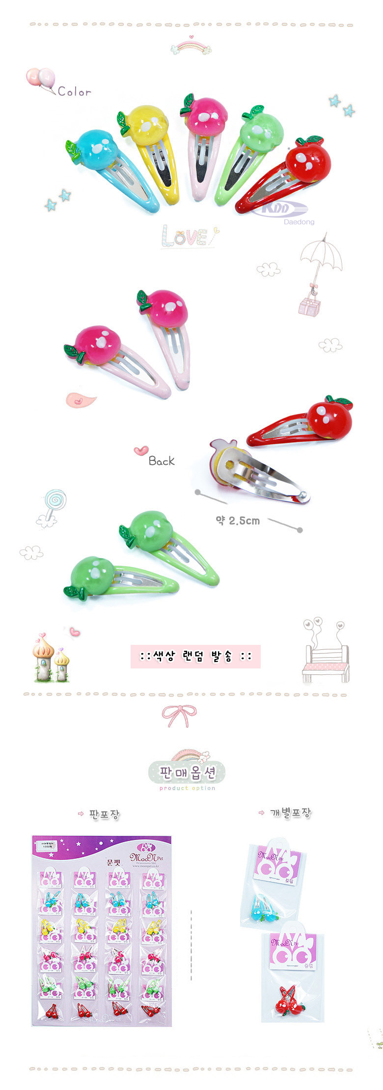 문펫 사과 똑딱이핀