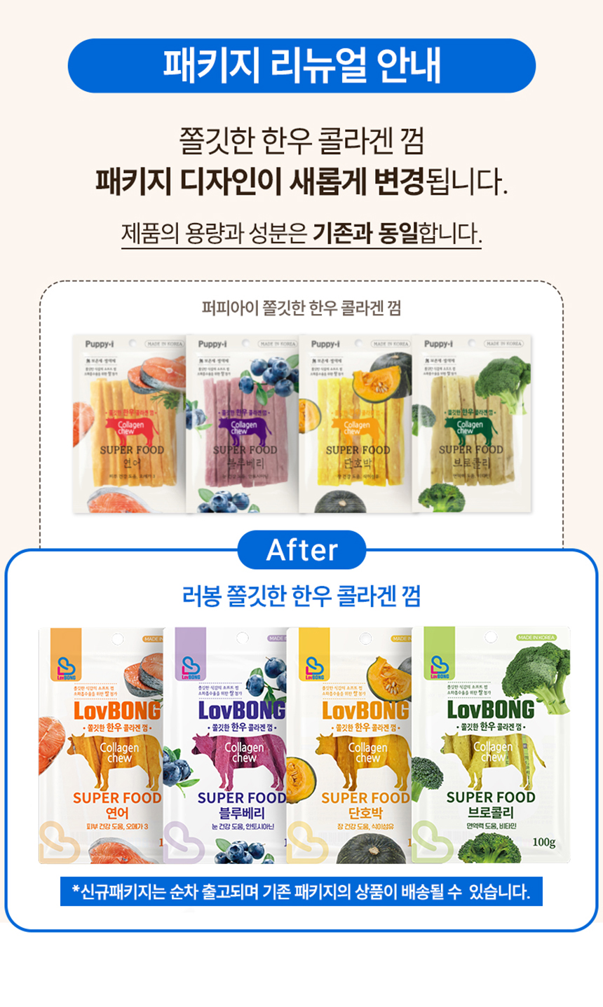 러봉 쫄깃한 한우 콜라겐껌 100g(연어)
