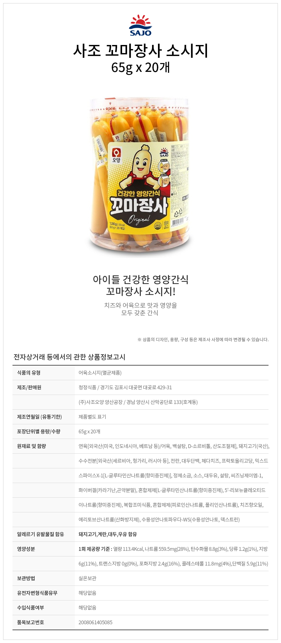 사조 꼬마장사 소시지 1300g