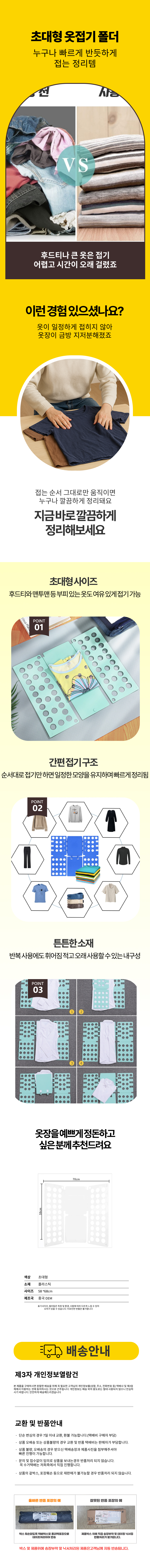 티셔츠 옷접기폴더 빨래접기 옷정리판 초간편 폴더