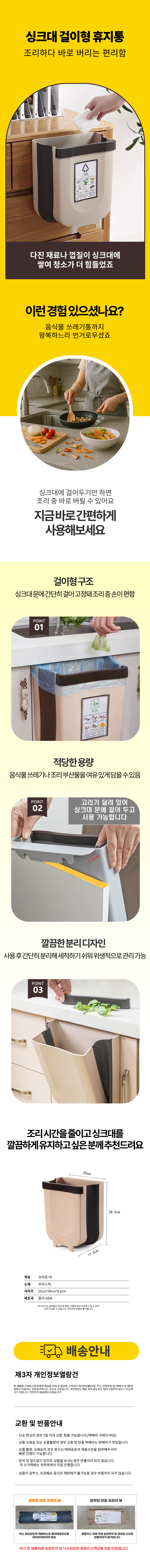 음식물 음쓰통 폴딩 주방 걸이형 주방휴지통 쓰레기통