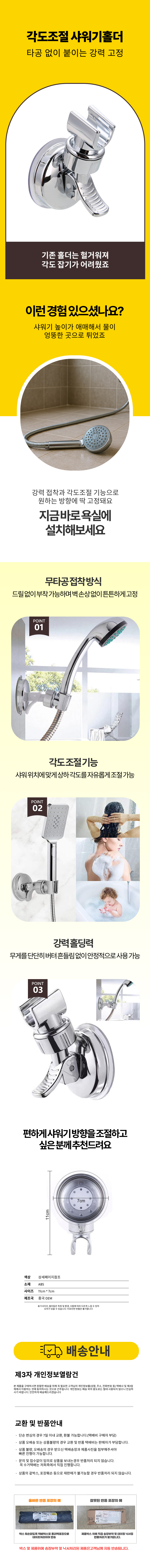 고정 샤워기걸이 용품 원룸 욕실 무타공 강력 거치대