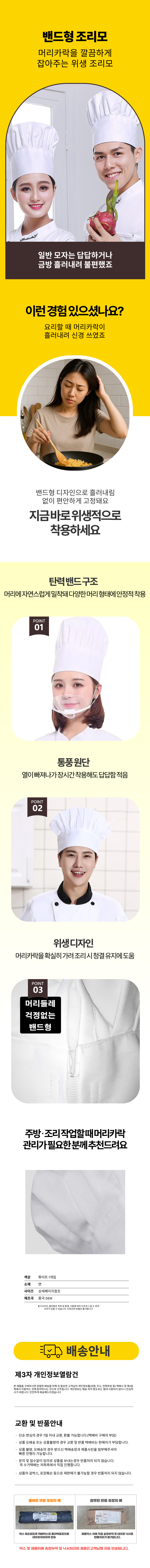 밴드타입 프리미업 주방장 쉐프 주방 호텔 조리모