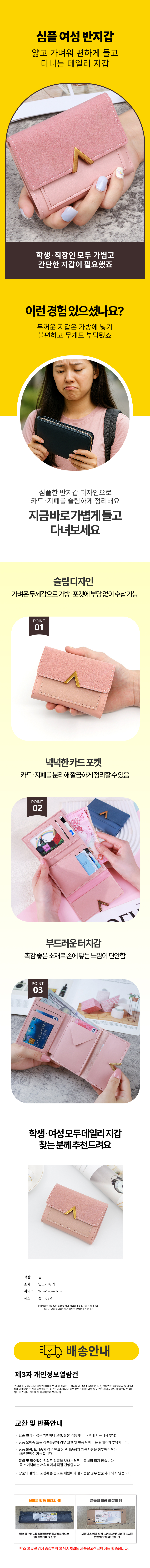 미니지갑 지폐 반지감 심플한 10대 동전 지갑 손