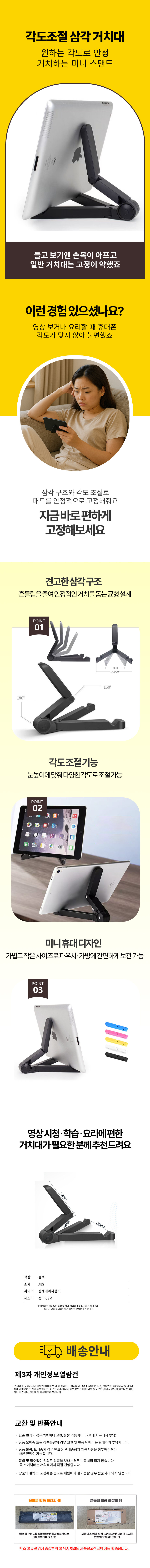 받침대 접이식거치대 접이식 휴대폰 삼각 거치대