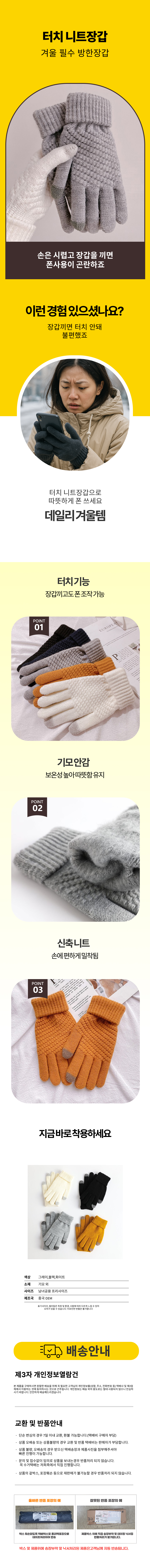 작업용 방한 휴대폰 스마트폰 핑거 겨울 장갑 터치