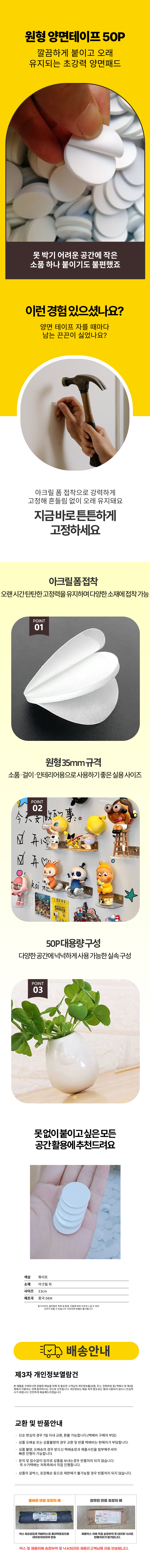 소품 테이프 원형 양면 소형 스펀지 차량용 50개입