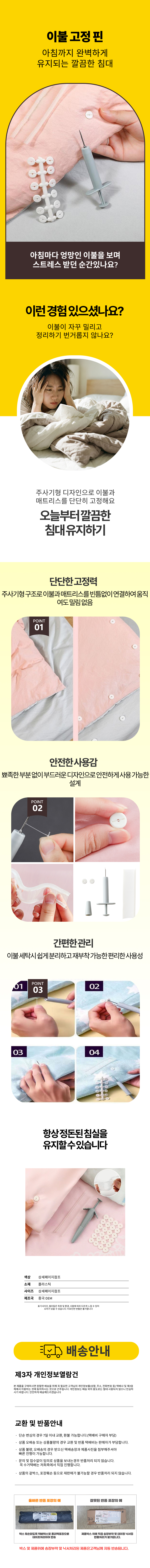 침대 고정 바늘없는 이불 시트 주사기 고정핀 커버