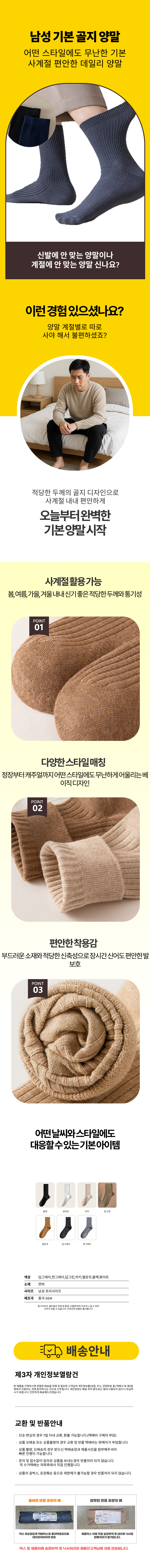 패션 사계절 남자양말 중목양말 심플 골지 양말 남성