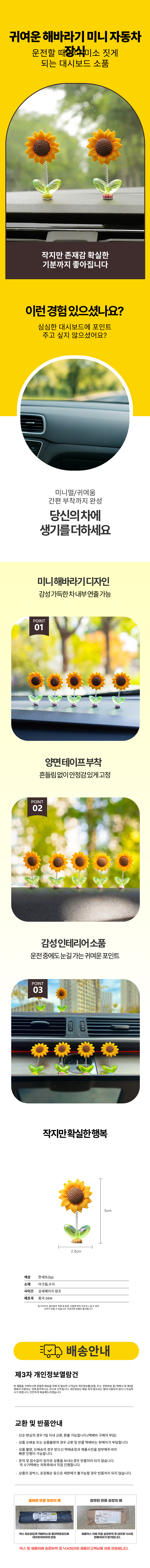 해바라기 미니 자동차 대시보드 장식 소품 금전운