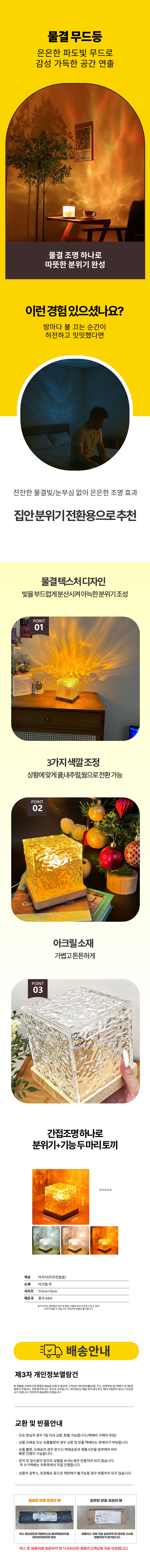 침실 인테리어 장식장 LED 취침등 물결 물멍 무드등
