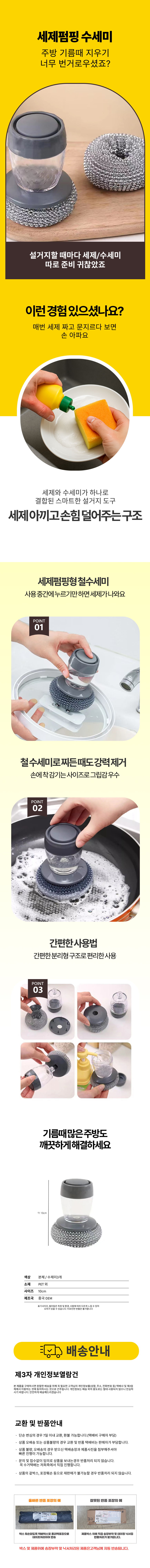 철수세미 세제펌핑 수세미 일체형 디스펜서 펌핑용기