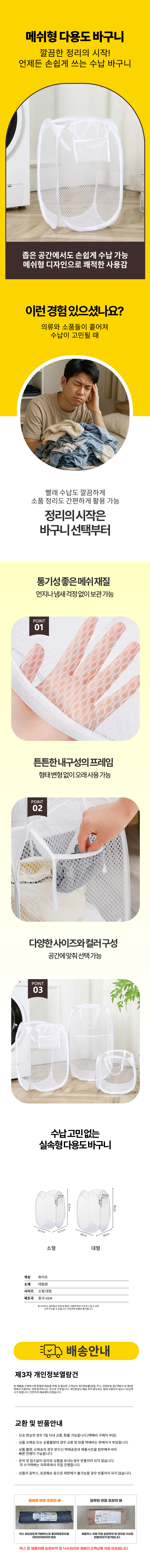 매쉬 빨래 바스켓 세탁 바구니 접이식 손잡이 장난감