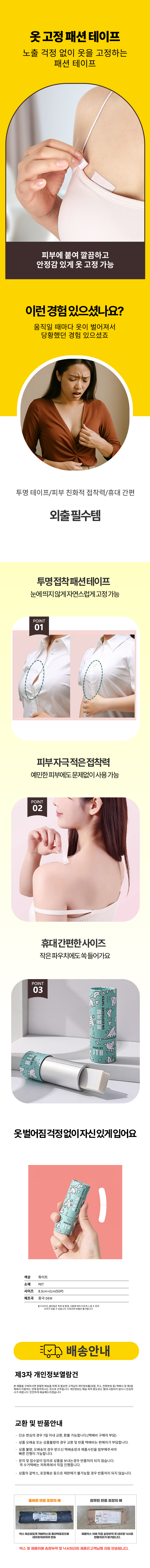 패션 테이프 노출방지 단줄임 셔츠고정 의류수선