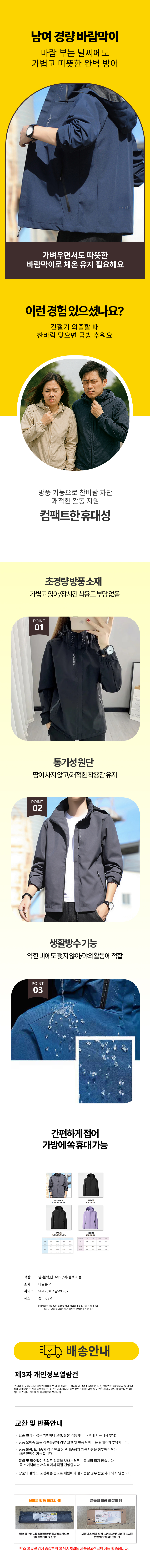 남자 여자 경량 바람막이 가을 캠핑 등산 아웃도어