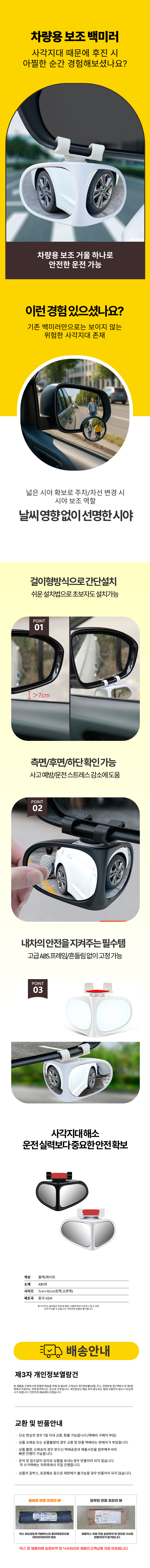 자동차 사이드 보조 백미러 안전 보조거울 사각지대