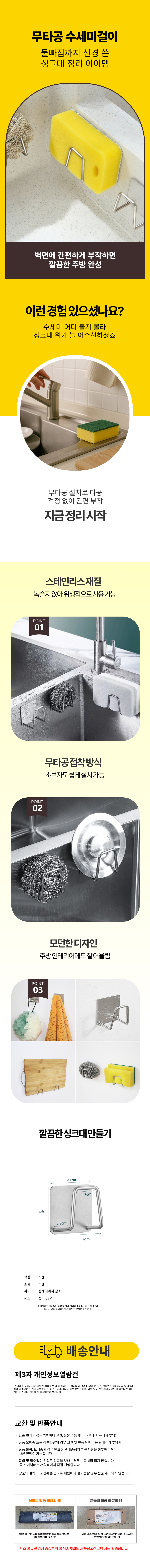 위생 붙이는 수세미 스텐 방수 행주걸이 정리대 걸이