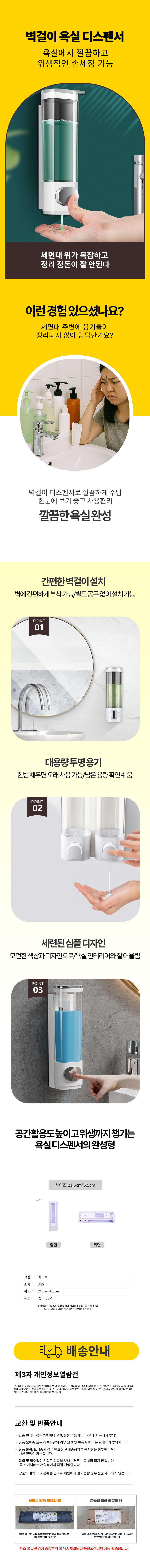 벽걸이 화장실 욕실 디스펜서 리필용기 리필통 샴푸