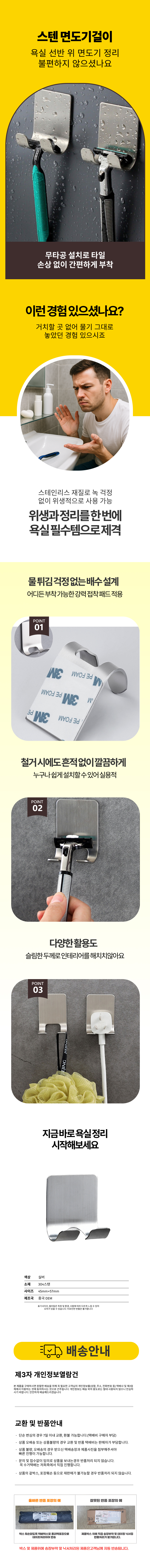 꽂이 거치대 수납 욕실용 스텐 접착식 칫솔 방수 걸이