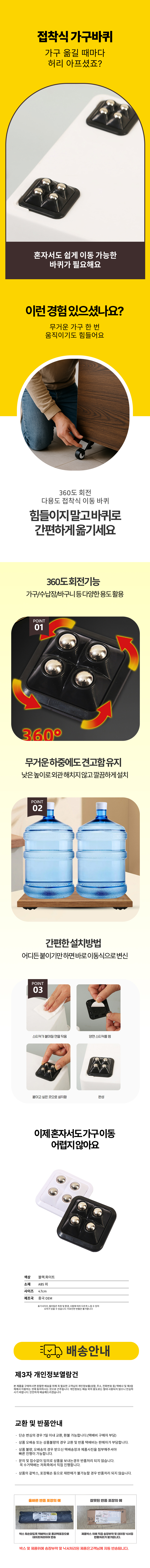 이동 바퀴 접착식 가구 360도 회전 부착식 무소음