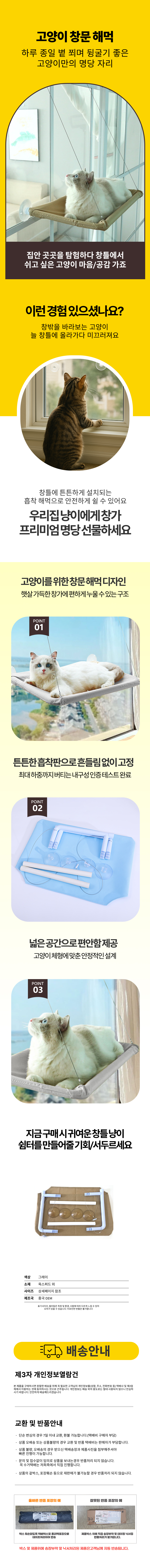 해먹 창틀 흡착 창문 선반 반려동물 접이식 캣워커