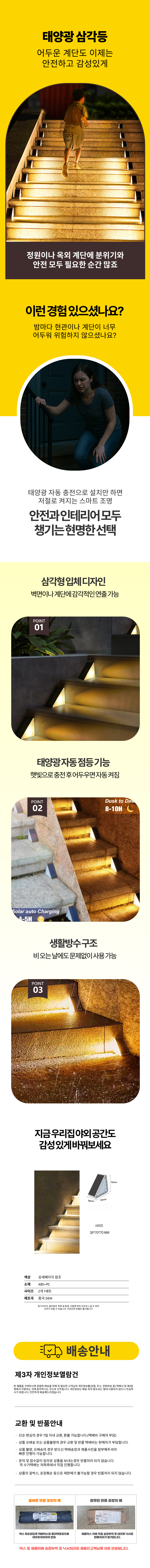 실외 야외 태양열 벽등 문주등 방수형 계단등 삼각등