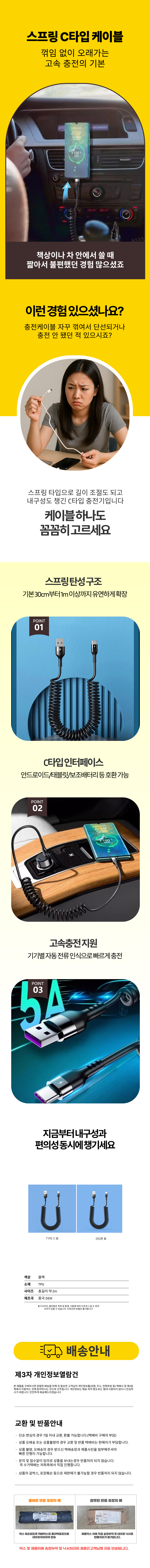 스프링 충전 케이블 꺾임방지 급속 충전기 C타입 고속